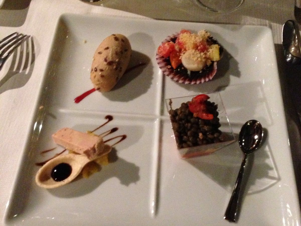 スタッフの方はラフな感じで気さくで元気でした。そこでもアペリティフが付いていて、飲みながらメニューを選びます。食事は普通です。ワイン一本ついてきました。