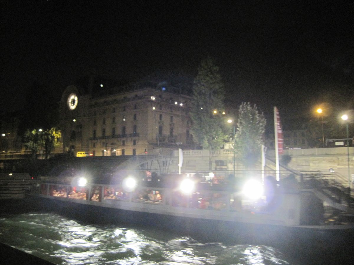 すれ違う船もライトアップされて、お食事や、ダンス、パリの贅沢な夜の楽しみ方を知りました。