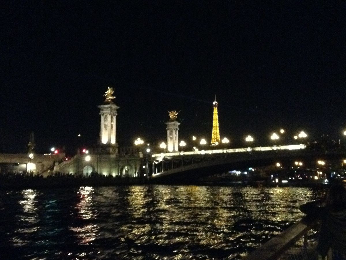 夜、8:30からの乗船で、ライトアップされたセーヌ川沿岸、橋に大満足しました。