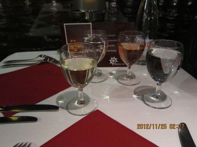 ドリンクは、別料金とありましたが、ミネラルウォーター、グラスシャンパンとワイン1杯は、サービスでした。追加で注文したワインは有料でしたが、ワインリストから選べて、いいのを飲むことができました。