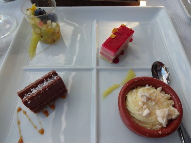 3コースあるのですが、真ん中のコースで十分でした。窓側の席は見晴らしもよく、コースのお料理もとても美味しかったです。ワインを2本あけ、すっかり気分良く過ごすことができました。日本人は私たちだけでしたが、日本語メニューもありますので、フランス語、英語がはなせなくても大丈夫です。