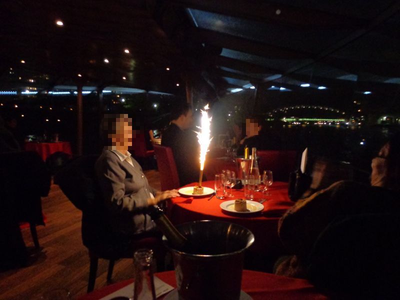 なんといっても、エッフェル塔のライトアップの時間に、オープンデッキのソファに案内してくれて、時間ぴったりにエッフェル塔の正面でライトアップを見る事ができました。