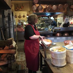 エッフェル塔の近くのホテルに宿泊したので、近くて一人で気軽に入れるお店を、と思いこちらを予約しました。レストランやブラッスリーだと、コース料理の量が多く、食べきれない恐れがあるので、ビストロにしました。8:00に予約を入れ、当日は雨が降ってしまい、メトロのマルマ・マルソー駅の近くでしたが、ホテルからタクシーを利用しました。途中が渋滞で8:10頃になったのですが、感じのいい、女性の店員さんが待ってくれていました。