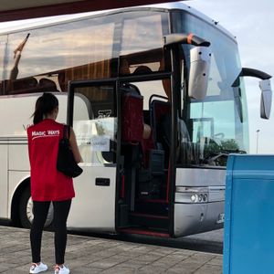 また往復ともに乗車場所には、赤いお洋服(MAGIC WAYSと記載。写真あり)を着た方がいるので、その方を目印に探してみてください。