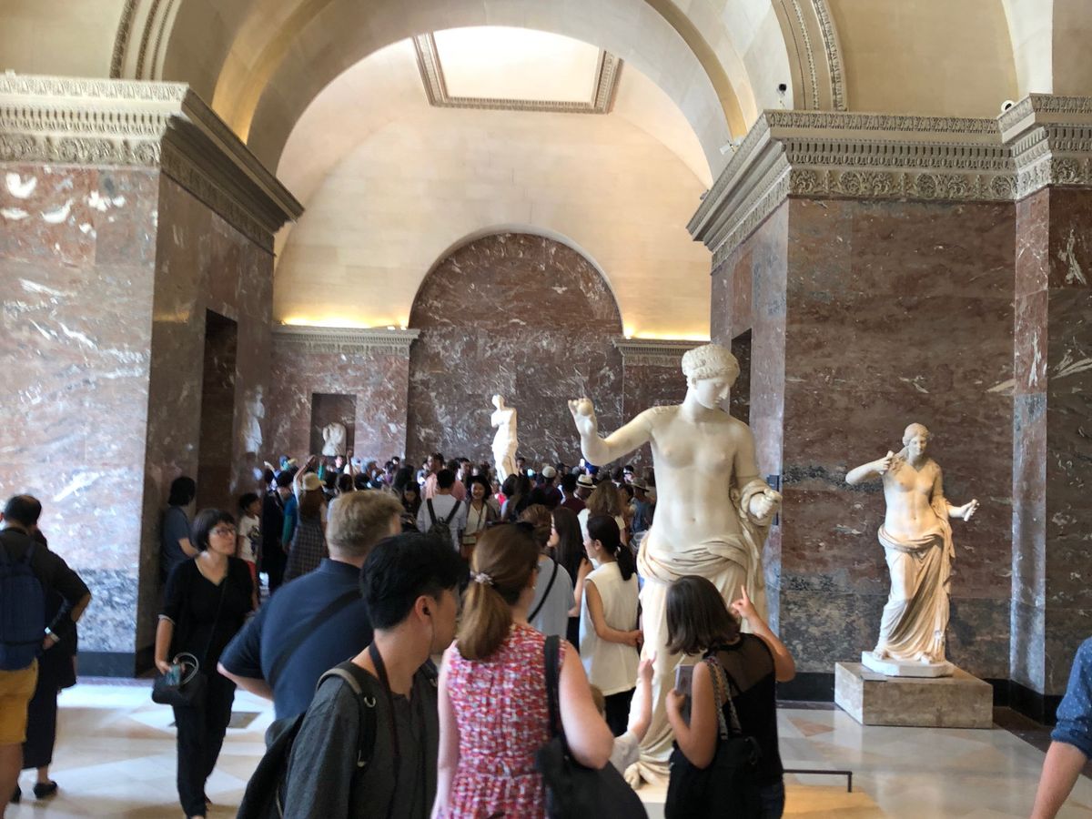 以前個人で行ったルーブル美術館ですが、広すぎて個人で見るには限界があり、あらためてツアーを申し込みました。要領良く見て回れるため効率は良いのですが、たった2-3時間でも混んだ館内を歩き回るため想像以上に疲れます。猛暑だったこともあり(美術館は当然エアコン等ありません)、余計に疲弊してしまいました。ご年配の方はつらいかもしれません。