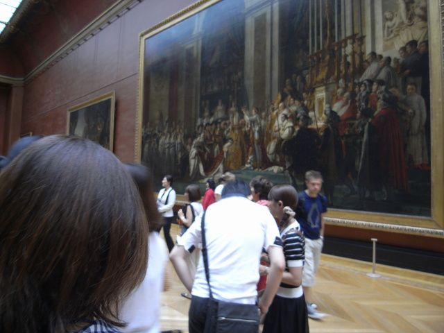 金曜日の午後のツアーに参加しました.(終了後は現地解散ですので,金曜日の夜間開館でゆっくり見られる作戦です.)ドノン翼2階はものすごく混雑していましたが,ガイドさんがピンポイントで見所を説明して下さいました.モナリザの前は近寄れないほどの人だかりでしたが,何分か待って段々近づき,最前列で見ることができました.モナリザはもう貸し出しはしないとのことですが,他のお目当ての絵が何枚か(何枚も!)イギリスに出張中で,あんな有名な絵を貸し出すのか?ルーブル太っ腹!と驚きました.