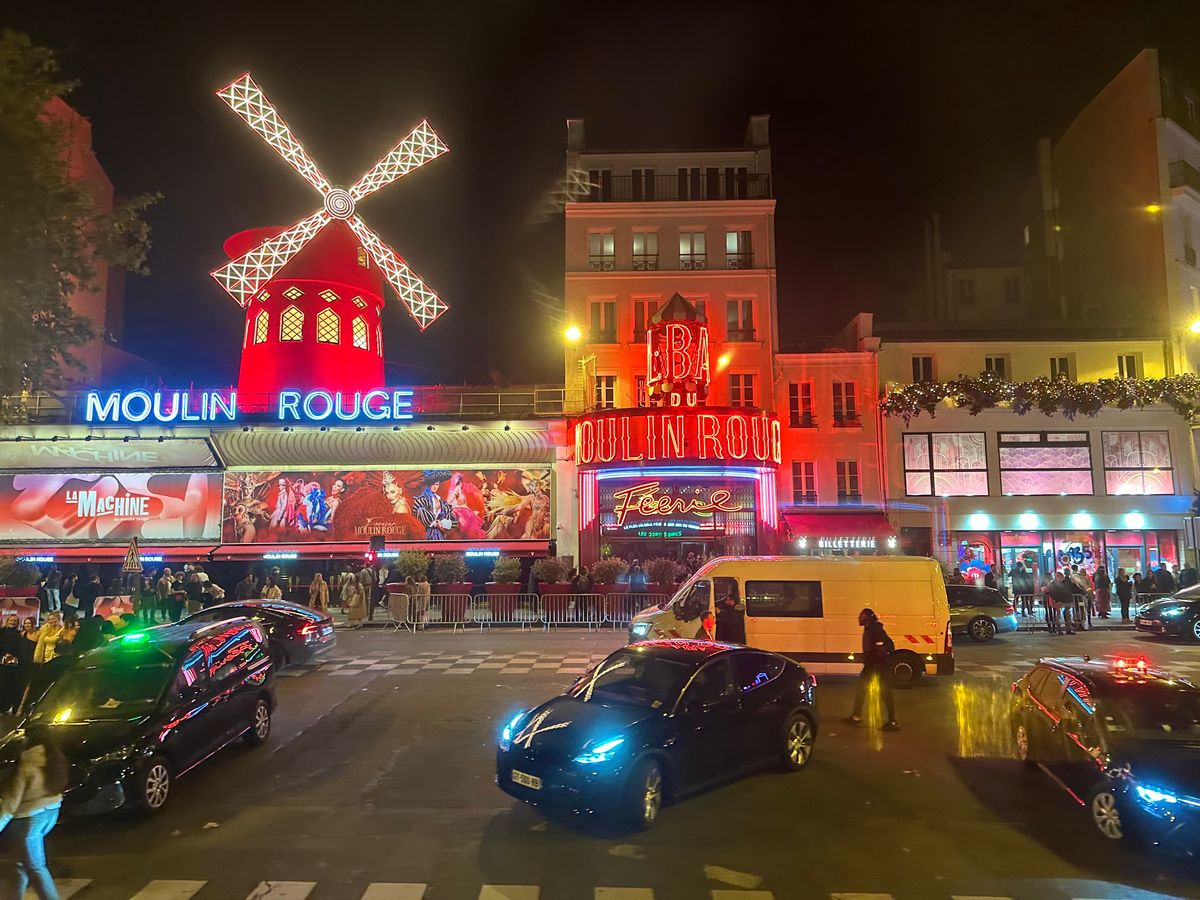到着した日に夕方出発は待ち合わない可能性があり、21:30発にしました。イルミネーションは綺麗でしたが、ムーラン・ルージュは、23:30始まりで終了が、1:20。眠かったー。