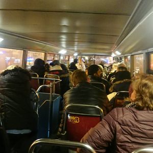オープントップとのことでしたので、完璧な防寒対策をして行ったのですが、普通の2階建てバスでした。そして、中は暖かいのでバスの窓が曇ってしまって、外を見るのが一苦労!