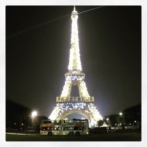 20時頃から乗車手続きをし、街を巡り22時にはエッフェル塔に到着し「シャンパンフラッシュ」が降りて見れました! 間近で見れて感動しました!
