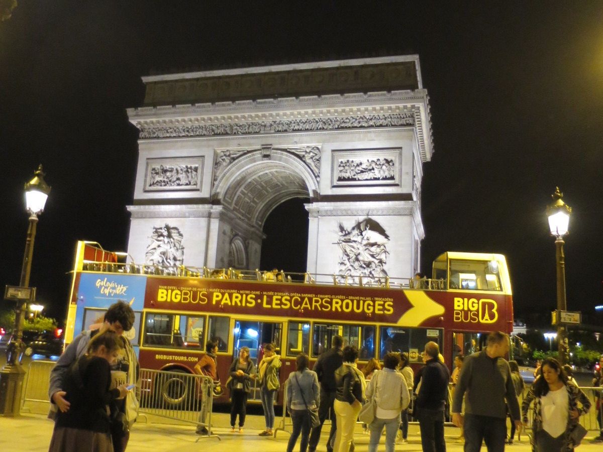 夜の外出には、やはり不安も有りますが、バスでの移動や団体行動が安心感という点で良かったですね。凱旋門の風景は、空の色とのコントラストが凄く綺麗で驚きました。