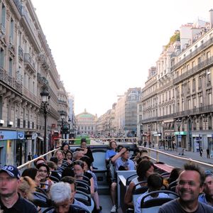 乗ってすぐに、結構速いスピードでオペラ通りのBIG BUSの事務所まで行くのですが、とっても揺れて車酔いでこのままなら身体がもたないと思いました。でも少し時間調整して、再び動いたところ、ゆっくりで全然平気で、綺麗な夜のパリを楽しめました。