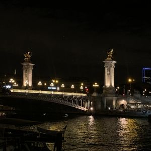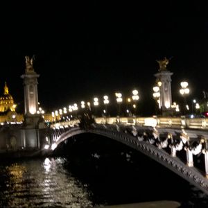 撮影のためバスを降りるために始めに行ったのはシャンゼリゼ大通りを通って凱旋門。ライトアップも昼間も近くで見たことはなかったのでその大きさに驚きました。1人参加でもガイドさんが写真を撮ってくださいました。次にエッフェル塔へ。シャンパンフラッシュを見るのは2回目でしたが、いつ見てもその美しさに感動します。撮影時間も十分にありました。最後はアレクサンドル3世橋。ここもライトアップされているのは初めて見ました。移動中もバスの電気は消され、パリの夜景を存分に楽しめました!帰りはホテルの場所によって別の車も含めホテルまで送っていただけました。女性1人でも安心できました!