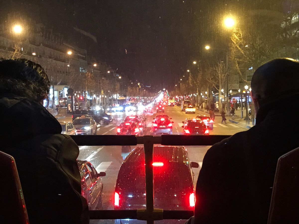 夜のパリの街をバスでぐるっと一周してくれたので、楽に観光できました。