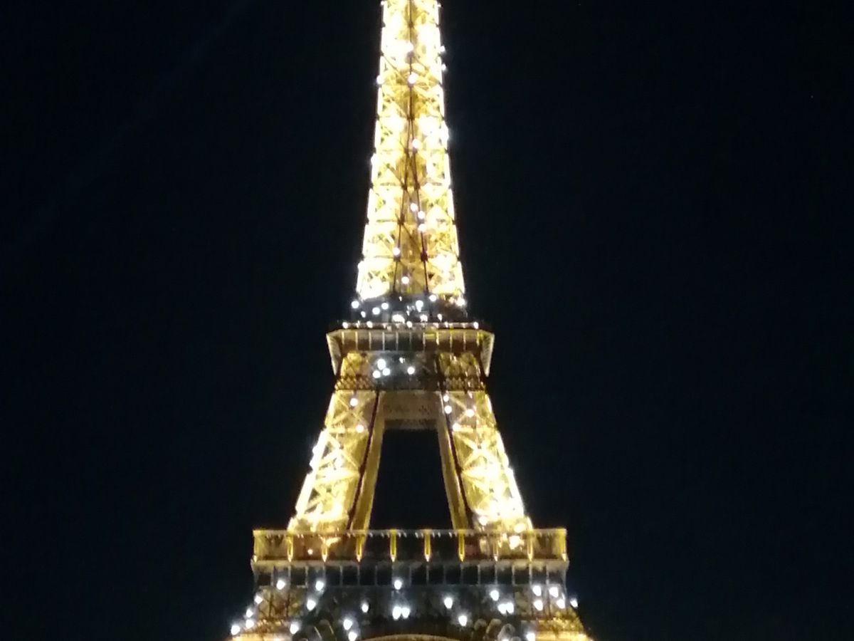 個人で市内観光~夕食~10時本ツアーに参加しました。ホテル復路送りつきのバスツアーなのでとても安全で快適でした(とっても歩いて疲れていたので)。なんといってもエッフェル塔の夜景が印象的。11時にキラキラ塔全体が点滅しその上には満月が。とても美しかったです。