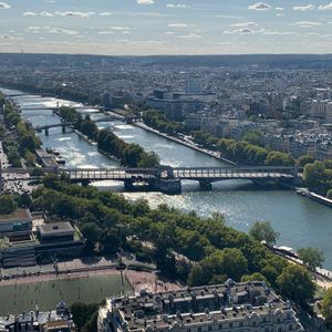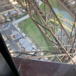 30頃到着、しかし、入場券は11時、確かに長い行列はできていたのですがややガッカリ、10分前に営業所を20人位のグループで出発、エッフェル塔入り口まで約7分、入り口には20人位の列、セキュリティチェックに時間がかかり通過まで約15分、更にエレベーター乗り場前で2度目のセキュリティ、第2展望台まで30分以上掛かります。生憎の雨模様で視界はあまり良くない状況でノートルダムを上から良く見られずまたガッカリ、第3からだと雲にかかって何も見えないかも、展望台も狭く人が多くて写真撮るのも隙を狙って。展望台をぐるり1周して写真を撮り早々にエレベーターに、第1展望台は予定時間超過のため降りずに出口に、結果最寄りのエッフェル塔駅に到着したのは12時前、午後オルセー美術館に行く予定だったのでギリでした。因みに最寄りの地下鉄駅から営業所までは10分以上はかかります、午後のチケットもパリシティビジョン社だったのでここの営業所でチケット貰えたのはピラミッドの営業所に寄る必要がなくなりラッキーでした。帰国し翌日ニュースをみたら20日にエッフェル塔を登る男がいて閉鎖されたと、前日で良かった❗何が起きるか分かりませんね‼️
