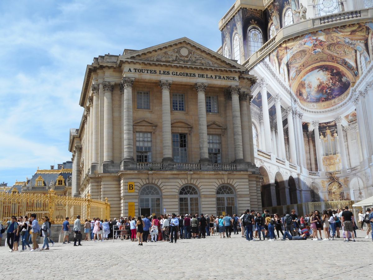45分も遅れたから、ツアーの方々は、もう行ってしまったから、後のツアーに参加出来ると言いましたが、急いで観光をしないと、ルーブル美術館や、パリの街をバスで巡れなくなると、せっかく予約したものが利用出来なくなると残念になるから、直ぐに入りたいと言ったら、優先チケットは使えないけれど、宮殿と庭園なら、入ることができると言われ、それでも、仕方ないと思い、直ぐに行ってみましたが、暑い中1時間位並んだ気がしました。今思うと、待っていて、優先入場でも変わらなかったかなと思いました。