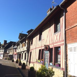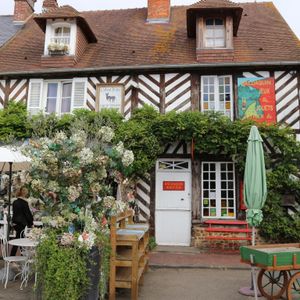 広場を見て、まだほとんど空いていないお土産やさんを見て、花々に飾られた美しいノルマンディ様式の家を見ながら村の教会まで。