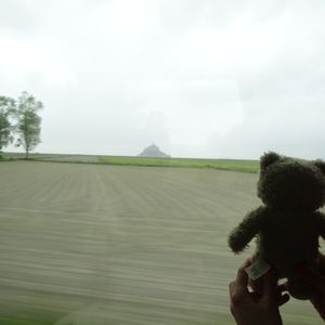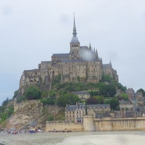 ずっと行きたかったモンサンミッシェル。当日は曇り時々小雨。遠くから薄ら見える姿でも感動しました!