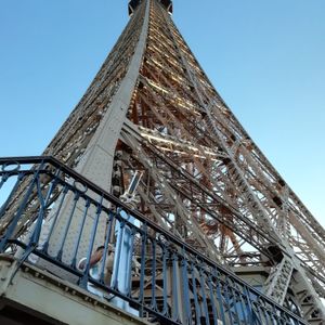 エッフェル塔に昇るに時間がかかり、降りるのにも時間がかかりそうな為、階段で降りました。ライトアップしている為下を見るとライトが眩しかった。5分ぐらいで降りました。