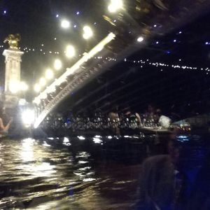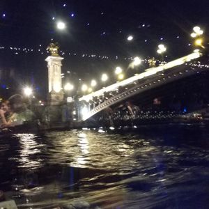出発は夜10時。パリの日没時刻くらい。エッフェル塔やアレクサンドル3世橋のイルミネーションがキレイでした。昼間とは、違う情景に感動しました。