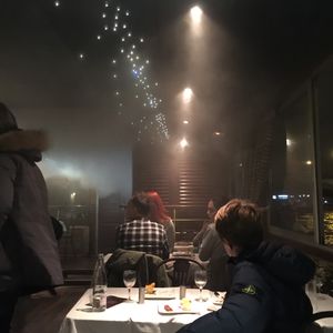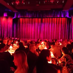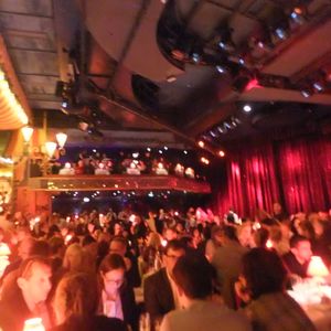 食事時は縦に並んだ4人掛けテーブルの前列のみ使用で、音楽の生演奏と歌を聴きながらいただき、食事後に後から来られたショーのみ観る人が4人きつめにテーブルの後ろの席に座られておりました。