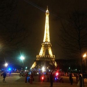 到着日の夜に参加しました。シャンゼリゼ通りのイルミネーションはクリスマスならではの温かみのある輝きでした。エッフェル塔がガスがかかり上の部分が見えず残念でした。