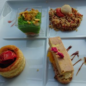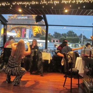 フォアグラ、キャビア等ディナーらしい食品が出ましたが私の舌には合わず食事の感想はあんまりです。音楽が風景事に変わり気分は盛り上がります。誕生日の方はケーキが運ばれていたり良い記念になると思います。帰りは終電の時間帯ではないのでメトロで帰れました。歩いて帰れる場所にホテルがあると楽ですね。