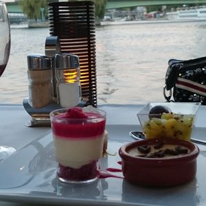 初めてのパリだったので、クルーズがしたいと思い申し込みました。船内はおしゃれなレストランになっていて素敵でした。ただ、スタッフさんが早く料理片付けたいのか、何度かfinish?と聞いてきたのが残念でした。料理も1日目だったのでこれが普通なのか微妙なのかわからなかったのですが、その後の滞在で食べた料理の方が安いし格段に