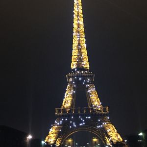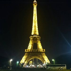 バスが、エッフェル塔と凱旋門の前で停車してくれるので、ゆっくり写真が撮れます。エッフェル塔にはちょうど23時に点灯するタイミングで行きました。