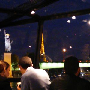 セーヌ川をひととおり回る間、食事を満喫できます。ロマンチックな雰囲気で、料理もとても美味しいですよ。船内は、当日は日本人は我々だけの様でした。要所要所で関連した音楽が船内に流れたり、ただ自由の女神のところでニューヨークの音楽をかけるのはちょっと気を遣い過ぎでしたけど・・(笑)