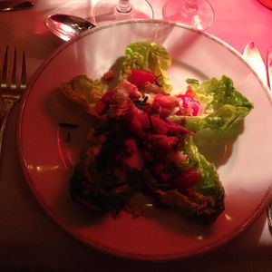チェックイン18:15に入場すると、しばらくして前菜が。。。おいしかった。18:45に出向し、20:00に到着。解散。その後、ルーブル美術館の夜景を見れて時間を有効に使えました。日本人向きですね。