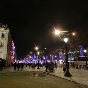 お正月のパリは街中がクリスマスイルミネーションで飾られ素晴らしかったです。スタート時間が遅く子供連れには不向きかもしれません。エッフェル塔の近くで下車し『シャンパンフラッシュ』に時間を合わせグッドタイミングでした。凱旋門の下車ではシャンゼリゼ通りのイルミネーションがよく見られました。他は大型バスで移動するだけなのでもう少し長いとお得かもしれません。