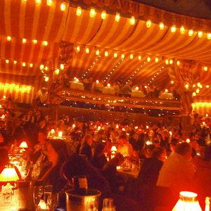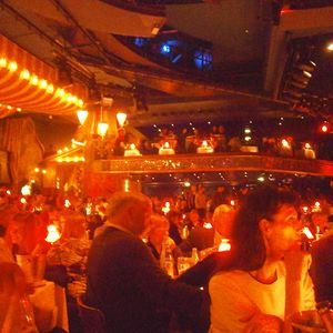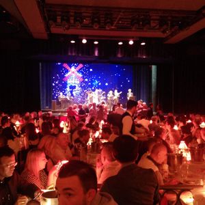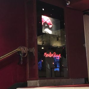 18時。地下鉄利用で最寄り駅到着。目の前がムーランルージュでした。分かりやすい。正面右手のチケットカウンターでバウチャーをチケットに引換。18時半から入場だからもうちょっと待ってね、と言われて外で待機。そうこうしている間に正面左手の入り口に人が入っていきだしたので、そこのセキュリティの人にチケットを見せて中に入ります。18時半より少し早かった。先頭から10番目くらいでした。そこで開場まで待機。で、列が動いて会場に入る時にクロークにコートを預ける人は預けてから、入り口に立っている人にチケットを渡します。その人が席を決めて、他のスタッフさんに指定の席に案内してもらいます。ちなみに、私はクロークに預けずコート持って入りました。クロークに預けている間に順番抜かれるので、良い席取られたら嫌だったんですけど、預ける人半分くらいでした。コート抱いて入ったら止められなかったし。これ、最初にどやどやと入っていく集団効果ですり抜けられただけかもしれない。
