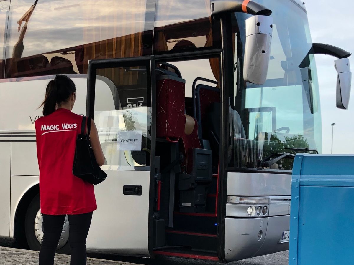 Opera駅前からのピックアップでしたが、当日直接参加の人がいたのか不明ですが、1台目のバスに乗れず、2台目に乗車。そのバスは直行ではなく、他のピックアップ場所に立ち寄り、そちらのバスへ移動させられました。少しでも早くディズニーに行きたいのに時間をロスしました。帰りのバスも、行き先の提示もなく、あたふたしながらOpera駅に帰着。チケットはしっかり手配できていたし、ディズニーは楽しく行ってくることができたので、よかったです。海外のツアーはこんなものと思えばおおむね⭕️です。
