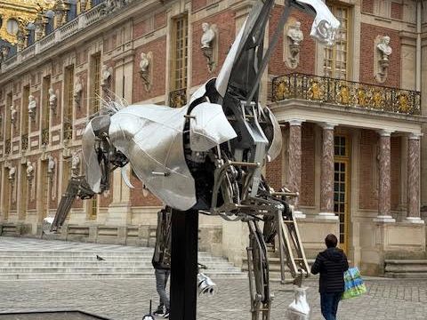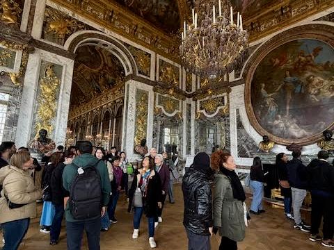 地下鉄を一回乗り換えて、ラッシュアワーの電車に乗り込み、朝9時半に集合場所に到着しました。参加者は20人程度、60?人乗車の大型バスに乗り込み、40分程度でベルサイユへ。宮殿へは優先入場でスムーズに入場し、英語ガイドの解説付きで宮殿内部を見学しました。その後は庭園でちょっぴり散策を楽しみ、バスでパリへ戻りました。午後3時頃にはパリへ戻れたので、地下鉄でピカソ美術館に行きました。