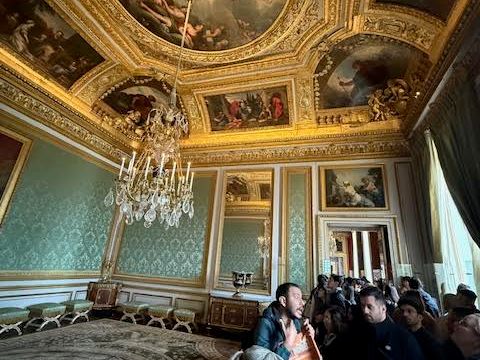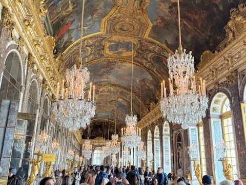 英語ガイドさんの解説と共に、宮殿内部の見学をしました。大居室や大広間、鏡の間などの見どころは事前学習済みで、英語の解説も子細に理解できなくてなくてもOKでした。ヘッドセットがあったため「次の部屋に行くよ---。」で、混雑の中、迷子にならずツアーについていけました。