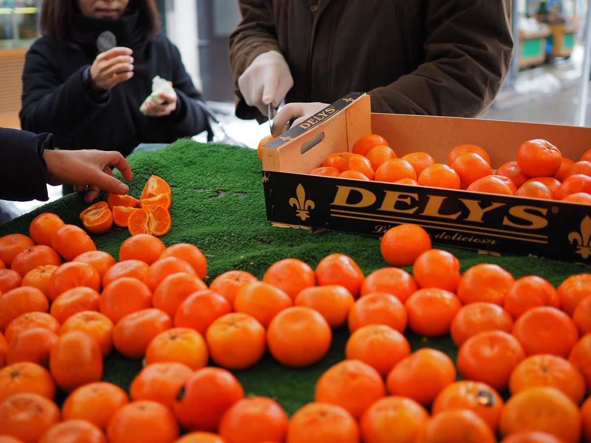 フルーツを試食させてもらえたり、