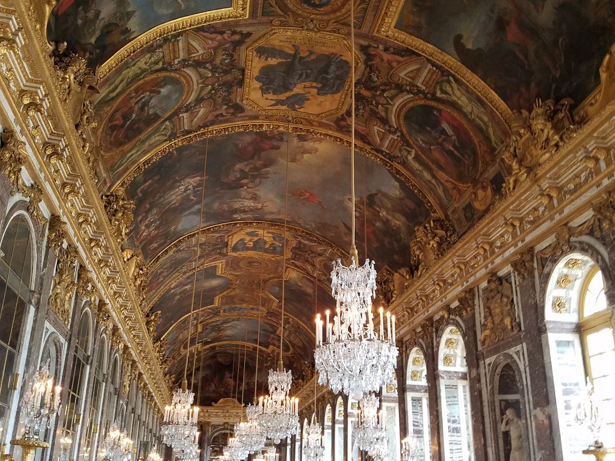 ヴェルサイユ宮殿の中は混雑してましたが、イヤホンでガイドさんの解説をよく聞けてよかったです。豪華絢爛なのですが、とにかく人人人。特にアジア人の団体観光客が非常に多く、団体バスが50台くらいあります。自由時間は30分くらいでしたので、庭園を見に行きたい場合は1日ツアーが良いですね。