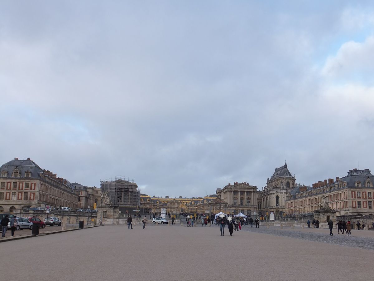 MyBus社のオフィスで集合、ガイドの女性とともに表通りまで徒歩移動、マイクロバスに乗り込んでヴェルサイユまで。途中、凱旋門周りのロータリーの渋滞を果敢に乗り越える運転手さんに感心、車中いろいろとガイドさんの説明を聞きながら宮殿到着。