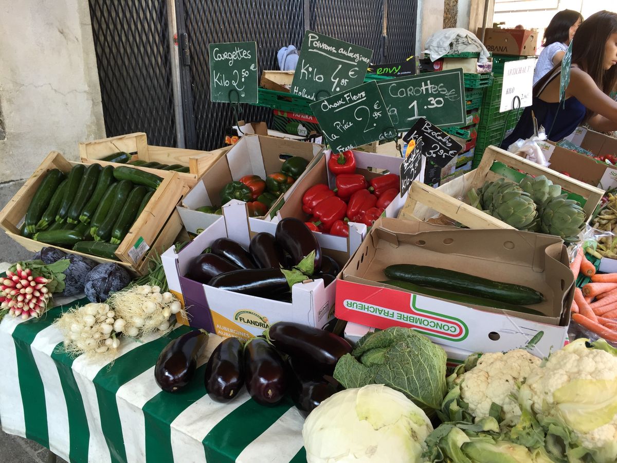 マルシェでは野菜の大きさに少しビックリしながら見学。
