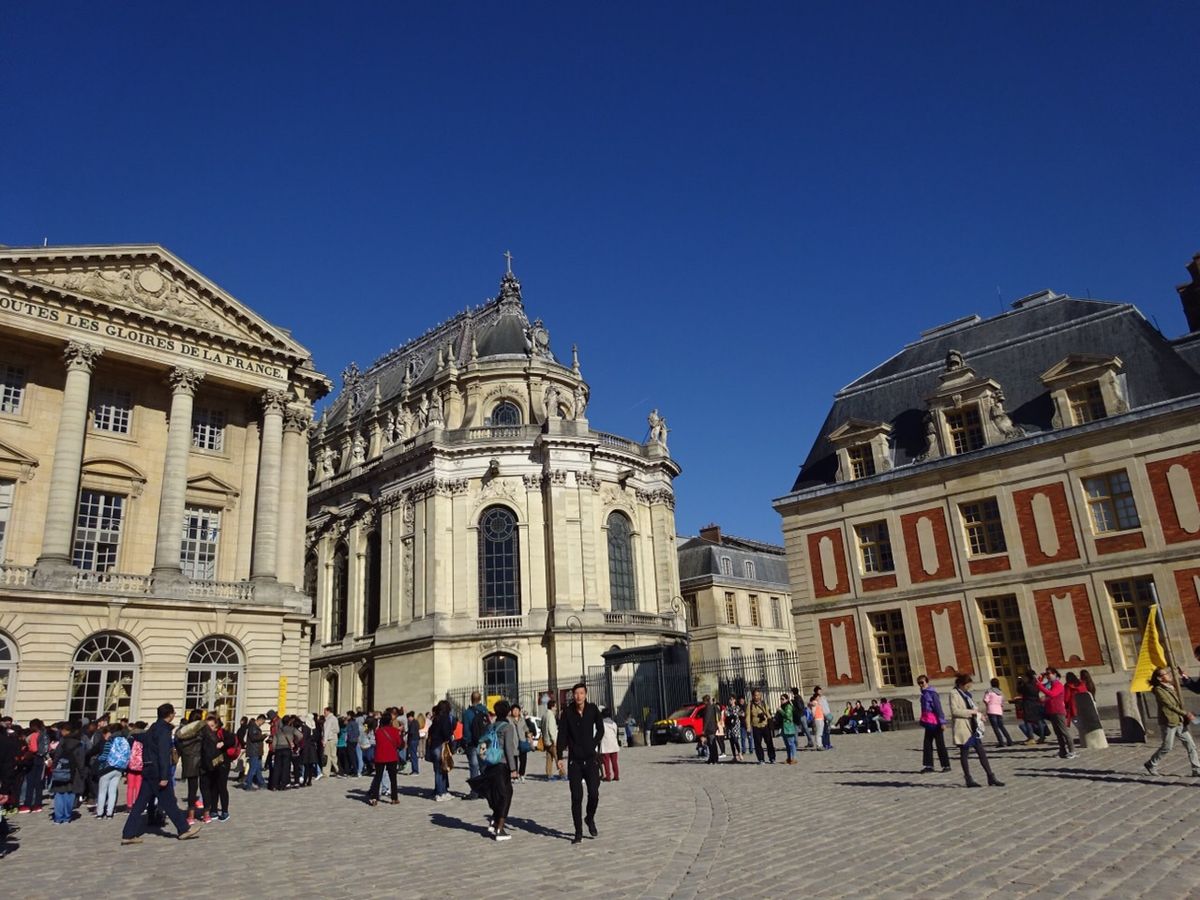 ヴェルサイユ宮殿は到着したときから大行列で、いろんなツアーバスがとまっていました。