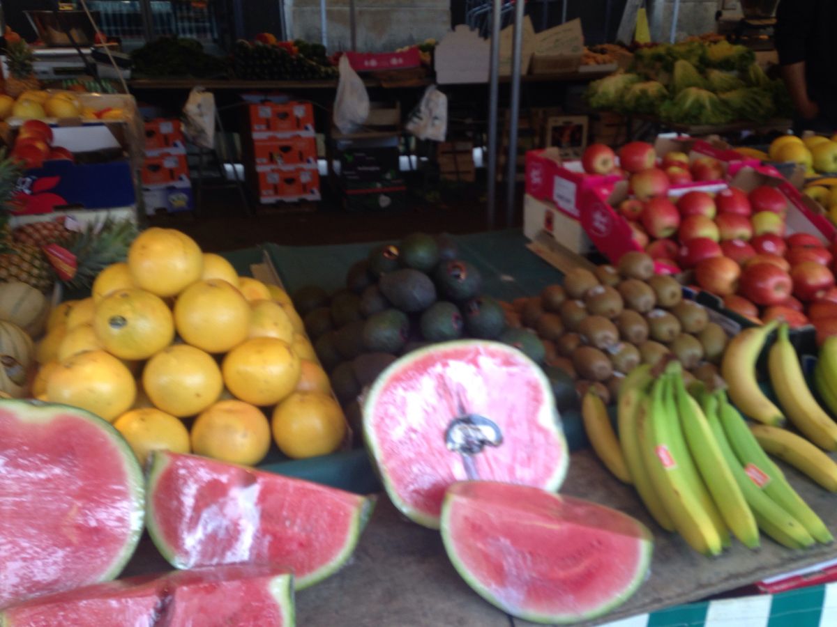 地元の方が利用される市場で、日本とは全然雰囲気のちがう並べ方をみてたのしみチーズとフランボワーズとサクランボを買ってその日のおやつにしました。