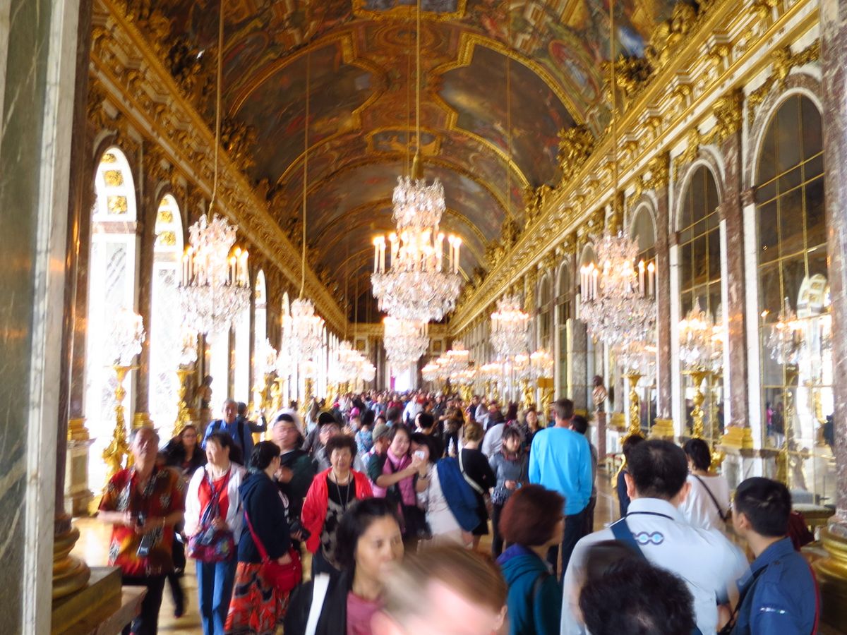 ベルサイユ宮殿の前は人人人…。チケットを持っていてもすぐには入場できないとのこと。このツアー、予約しておいてよかったです。ガイドの小林さんのお話は大変面白く、フランスの歴史に興味がわきました。「鏡の間」は豪華絢爛。一見の価値ありです。