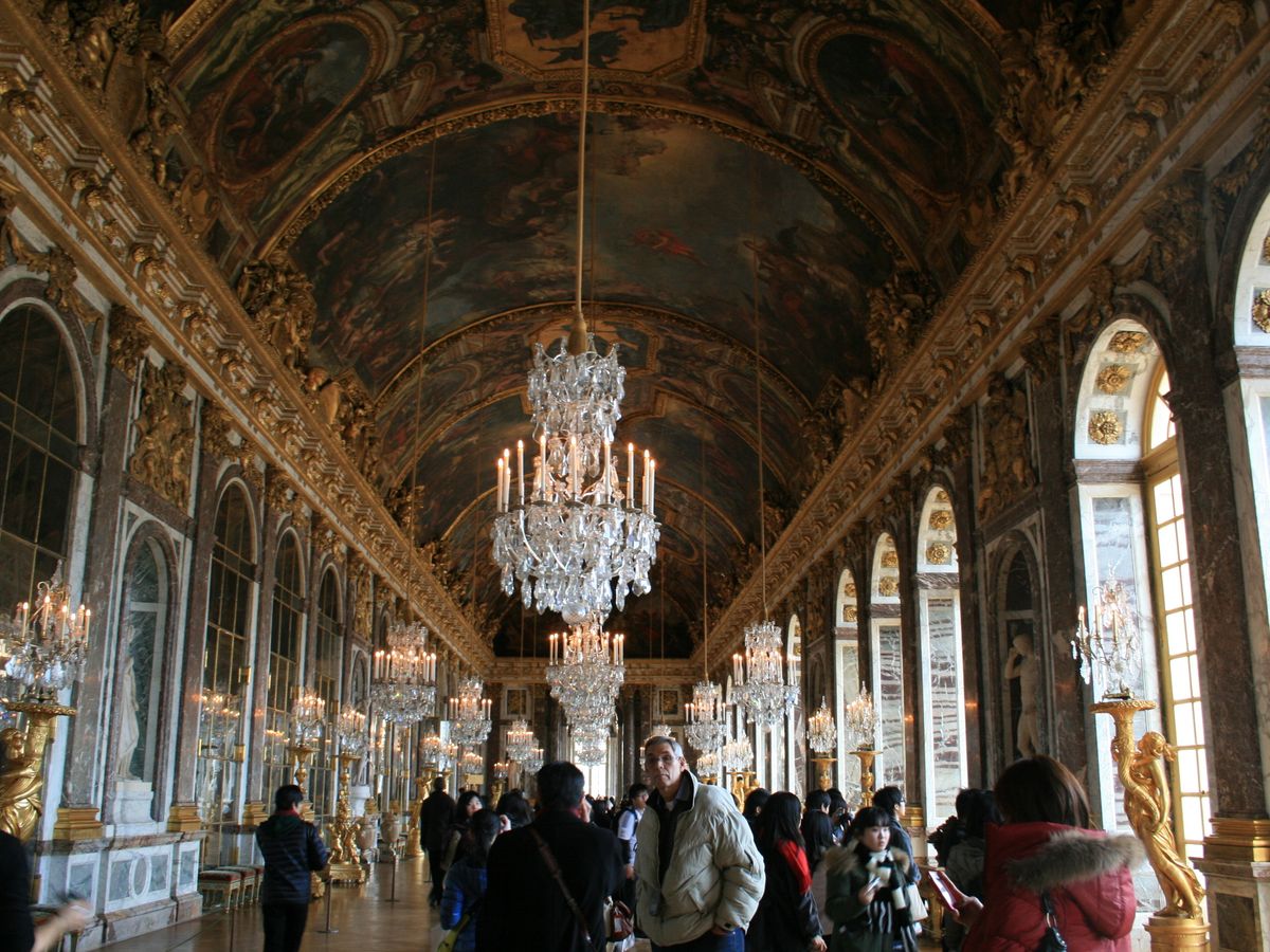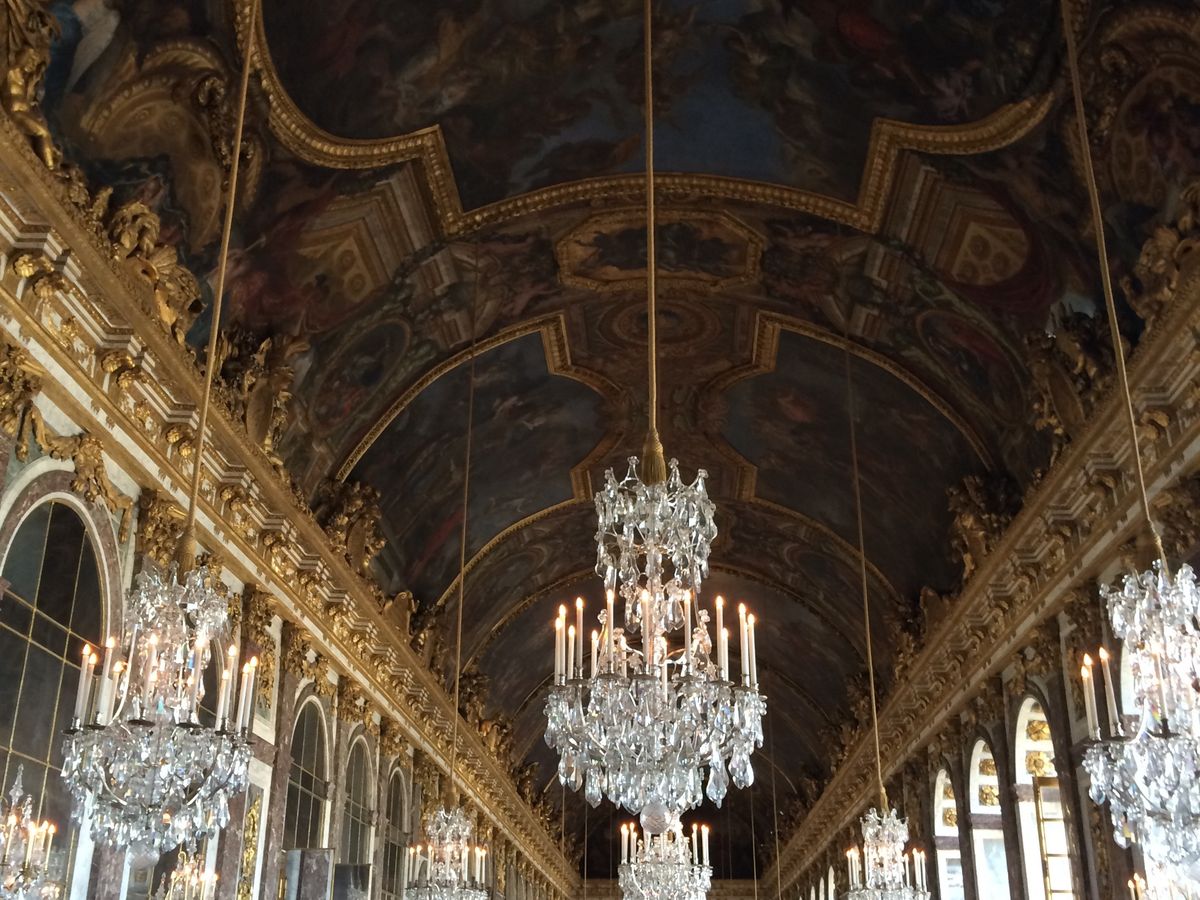 土曜日のベルサイユ半日ツアー午前中にもかかわらず、宮殿前は長蛇の列、そこをするっとすり抜け宮殿内に、時間の限られた個人旅行では、少し高いけど、お金で時間を買うこのようなツアーは不可欠だと思います。ガイドさんはうまく誘導してくれて、どこの部屋も最前列で見ることが出来ました。鏡の部屋でガイドさんの取ってくれた写真も最高の一枚でした。