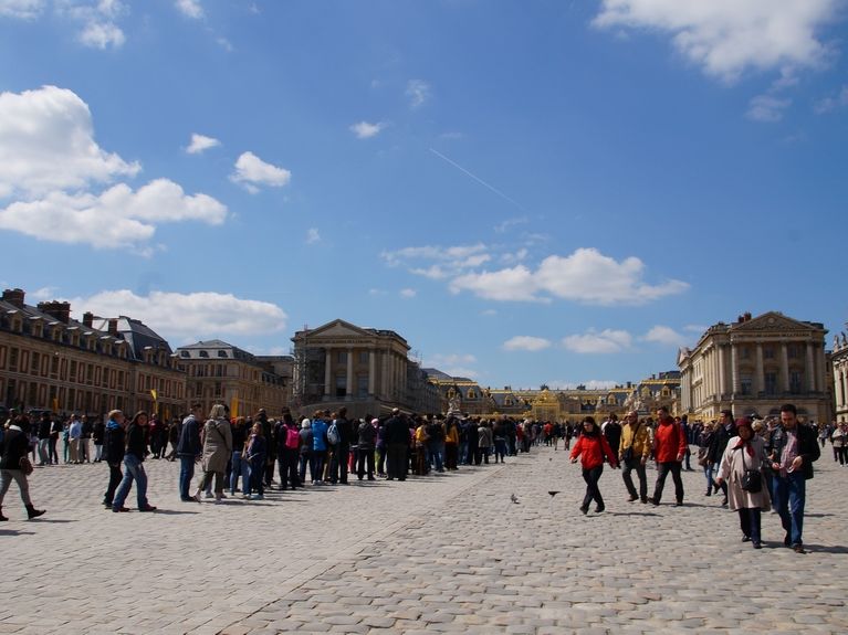 午前中のプランでしたので、8時40分にはベルサイユにつきましたがすでに並んでいましたが、ツアーですとチケットが手配されているので行列の割りにはスムーズに入場できました。中は1時間ほどの自由時間があるのですが、すこし豪華なたてものなのでもう少し見たいとは思いますがよかったです。帰りマルシェによれてガイドさんが、もしもの時フランス語で通訳してくれ、楽しめました。また、午後の計画で不明な点も親切に教えてくれるのでとても助かります。