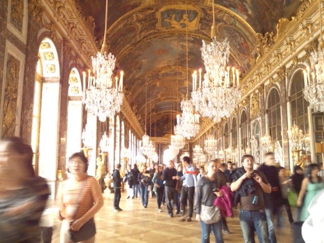 ヴェルサイユ宮殿には40分くらいかかるので、日曜日がいいようです。渋滞がなくすいている日曜でよかった。周りの塀などが、修理を終えたばかりなので金ぴかだったので、そのイメージでなかに入ると時代を感じた。中はとても素晴らしいが、かなり古い感じがいした。本などとは少し違った感じでした。