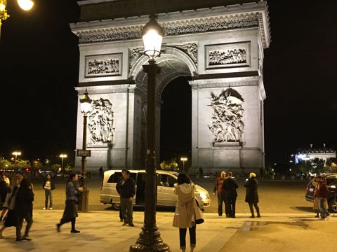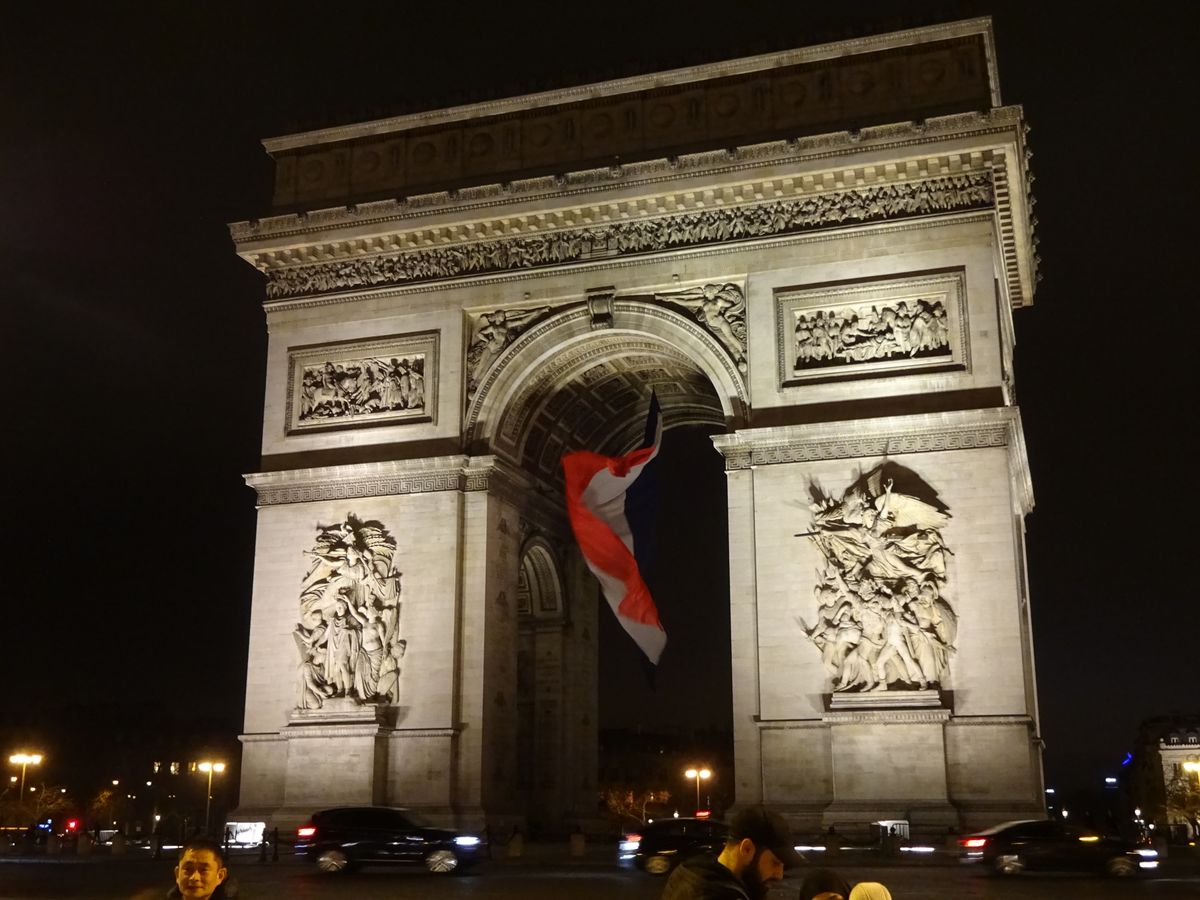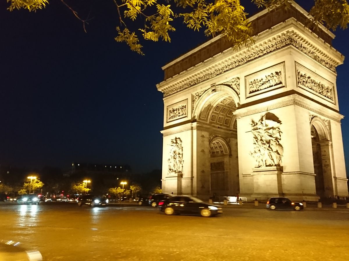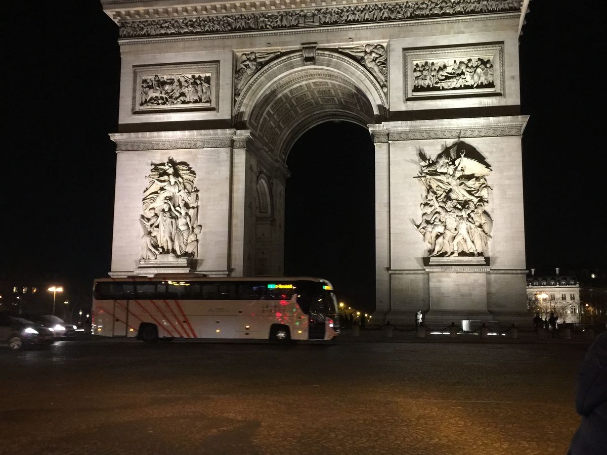 夜の外出には、やはり不安も有りますが、バスでの移動や団体行動が安心感という点で良かったですね。凱旋門の風景は、空の色とのコントラストが凄く綺麗で驚きました。