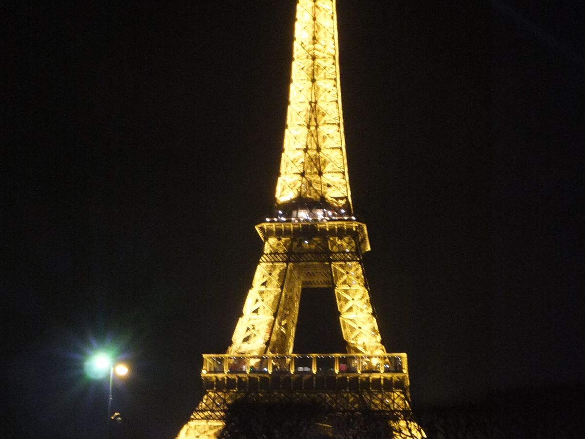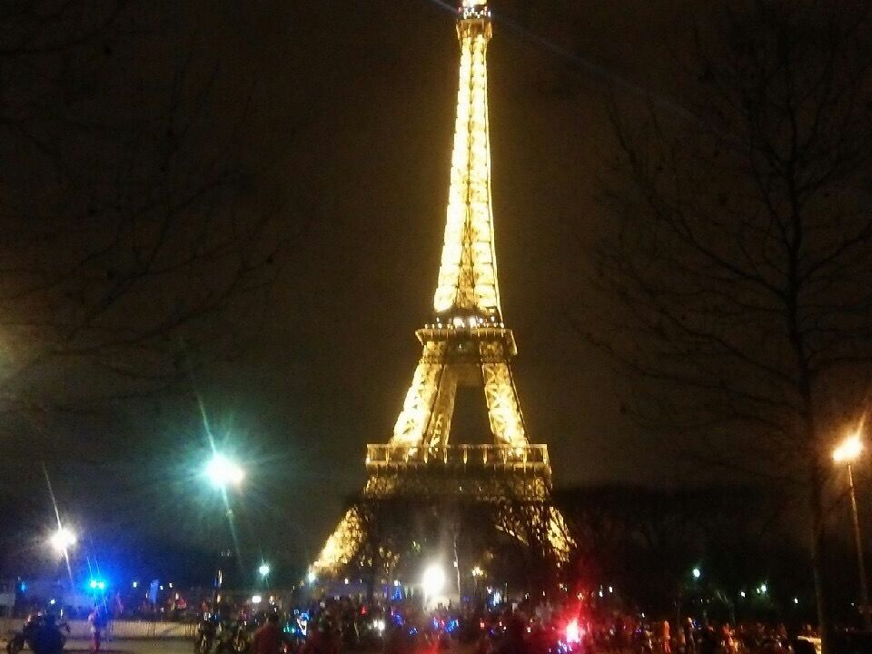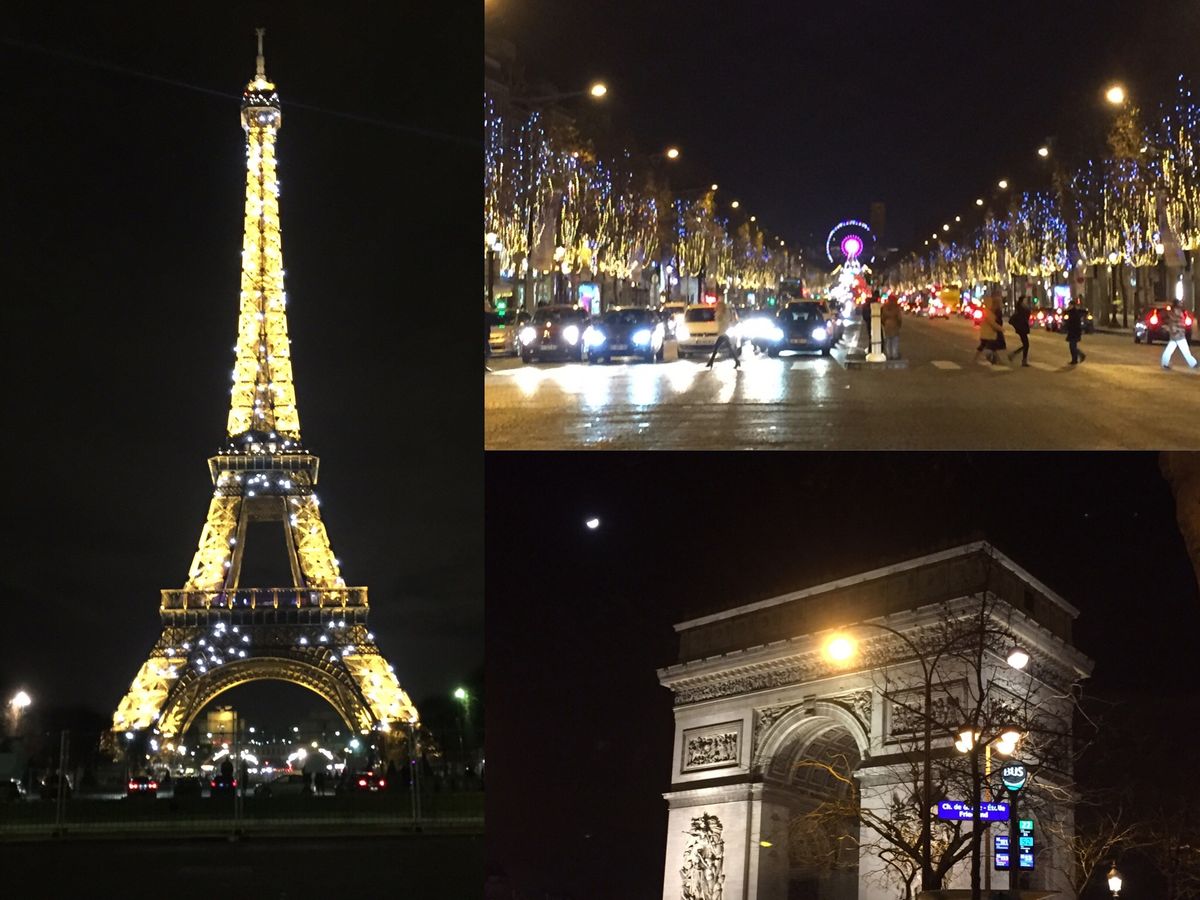 到着日の夜に参加しました。シャンゼリゼ通りのイルミネーションはクリスマスならではの温かみのある輝きでした。エッフェル塔がガスがかかり上の部分が見えず残念でした。