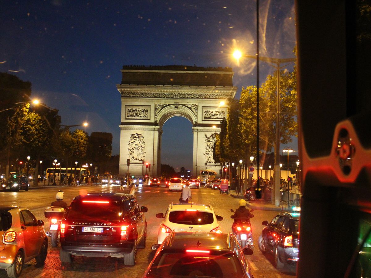 バスから夜の町並みは解説付き、エッフェル塔と凱旋門は降りて写真タイムを作ってくれます。