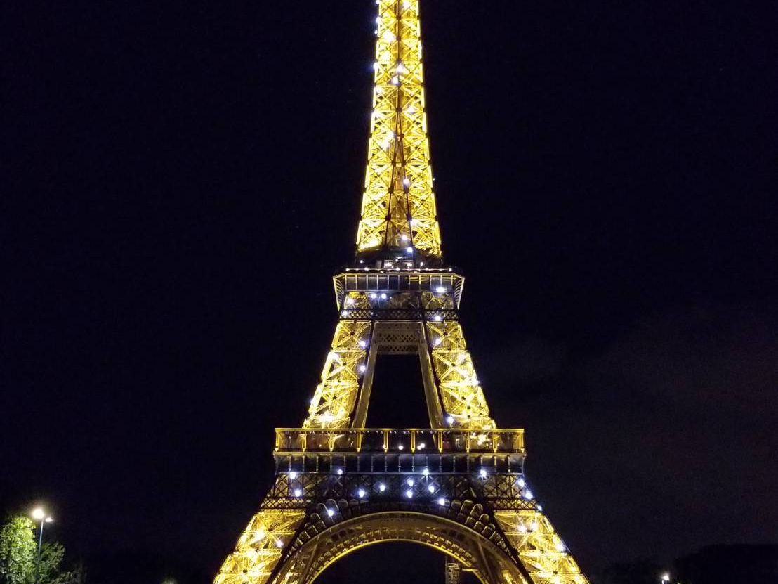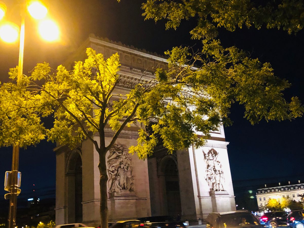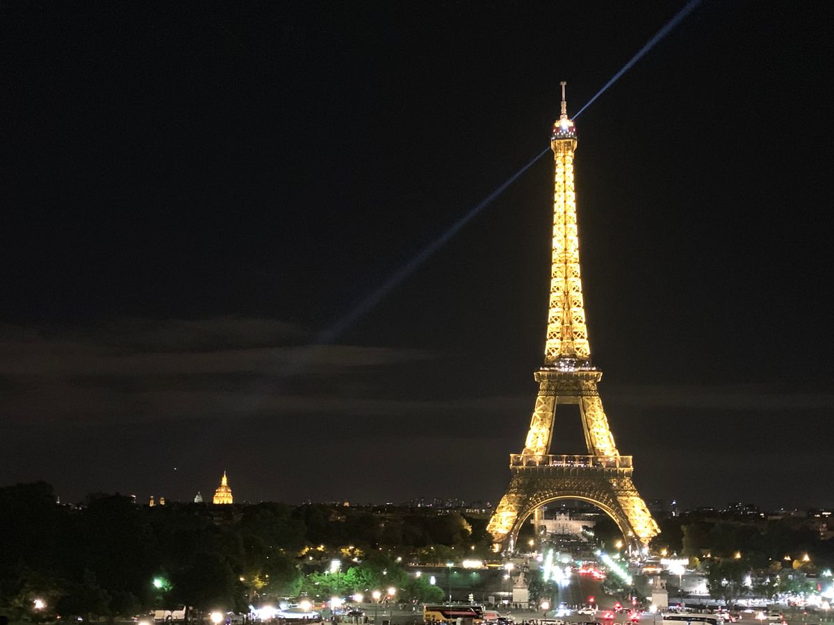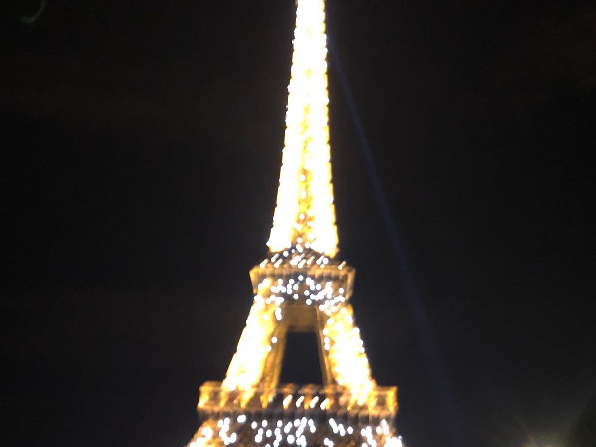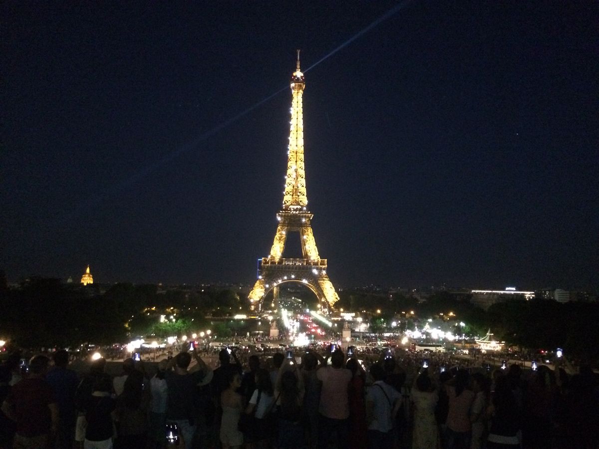 初めてのパリ、夏で日没が遅いこともあり、街並みがもっとキラキラ綺麗なのかと思いましたが、車窓からよく見えず残念。曇った照明のどよーんとした凱旋門と、エッフェル塔のシャンパンフラッシュだけでした。